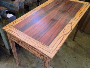 Le Bois Serpent est sûrement le bois le plus reconnaissable de Guyane ; les marbrures foncées venant strier un bois de coeur beige clair sont caractéristiques de cette essence. Prisé pour son aspect décoratif, il est utilisé en ébénisterie pour la fabrication de cadres, de petit mobilier ou pour l’artisanat d’art.